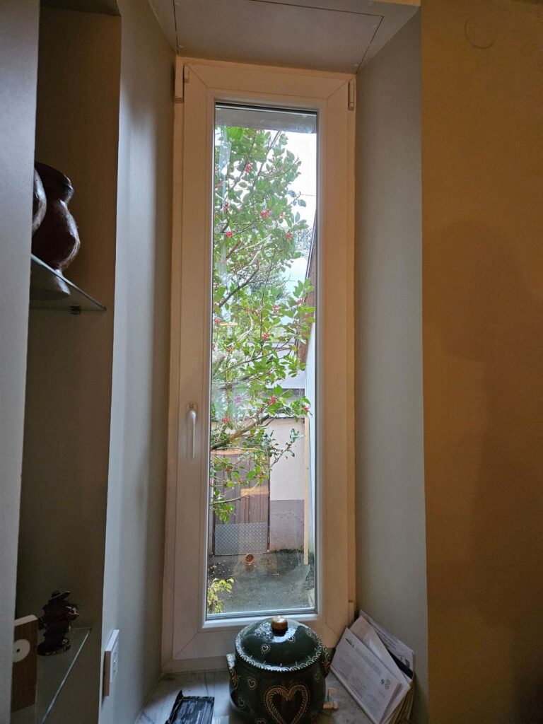 Conçu pour s’intégrer parfaitement, il est monté dans un châssis en laiton sur lequel sont fixées les vergettes. Cette solution technique permet une pose en surverre sur une fenêtre en PVC neuve, garantissant à la fois esthétisme et la solidité du panneau.